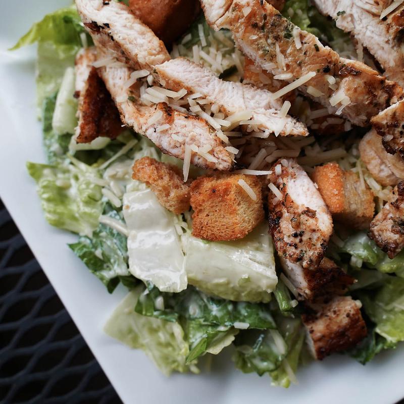 Grilled chicken, crisp lettuce with croutons, parmesan, and Caesar dressing.